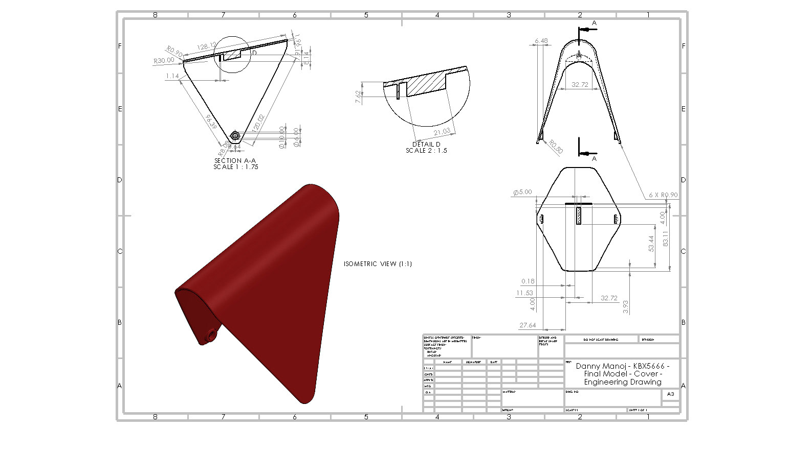 Once I developed my design to its final iteration, I modelled it in SolidWorks, producing technical drawings and renders using KeyShot. Finally, it was 3D printed, providing a physical presentation of the final, fully realised design